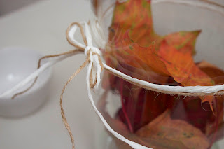 Just nu har jag väldigt lite framme. Känner för det lite mer avskalade så här innan alla juldekorationer ska fram. Istället för nya blommor efter sommarens pelargonior så dekorerar jag med lite höstlöv. Hösten har så otroligt vackra färger tycker jag och denna hösten i synnerhet. Som här har jag lagt lite vackra lönnlöv i en glascylinder. Enkelt och vackert!